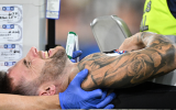 He landed heavily on his left arm and play was stopped for several minutes as he received medical attention.