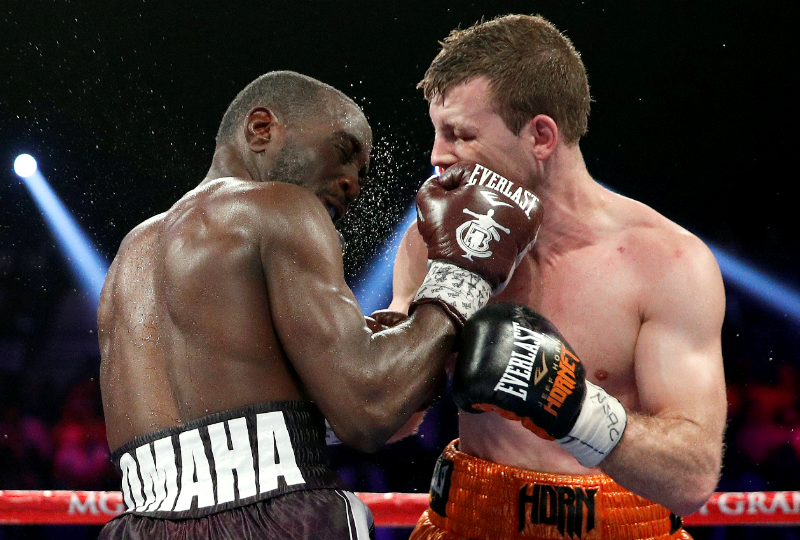 Crawford went on a rampage in the eighth round, rocking Horn with the last punch just before the bell but had to wait to finish the job.