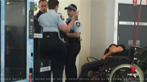 A photo aired by Channel 7 News showed Hackett slumped over in a seat whilst AFP officers spoke nearby at Melbourne Airport.