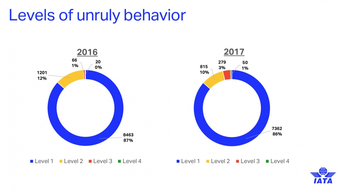 IATA ranks passenger behaviour on four levels, from minor to moderate to serious to flight deck breach.