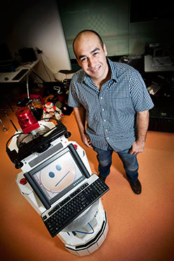 As part of his research, Dr Dayoub is experimenting with an Adept Guiabot, a one metre, 60 kg mobile robot, to develop methods that enable an automaton to navigate a changing environment, such as a family home, so that the technology can one day be used as a domestic helper.