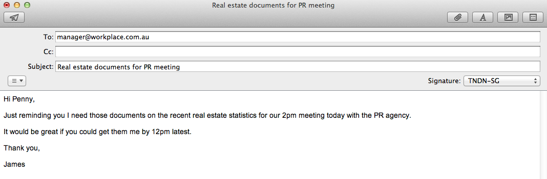 Putting a date or deadline in the subject line will also ensure your email gets seen to in due time.