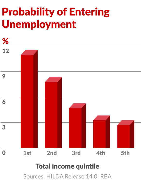 Confirming Dr Walsh’s concerns was new research from the Reserve Bank, which found that bottom-income earners (including presumably many young adults) are the worst affected by economic downturns, precisely because they are most at risk of falling into un- and underemployment.